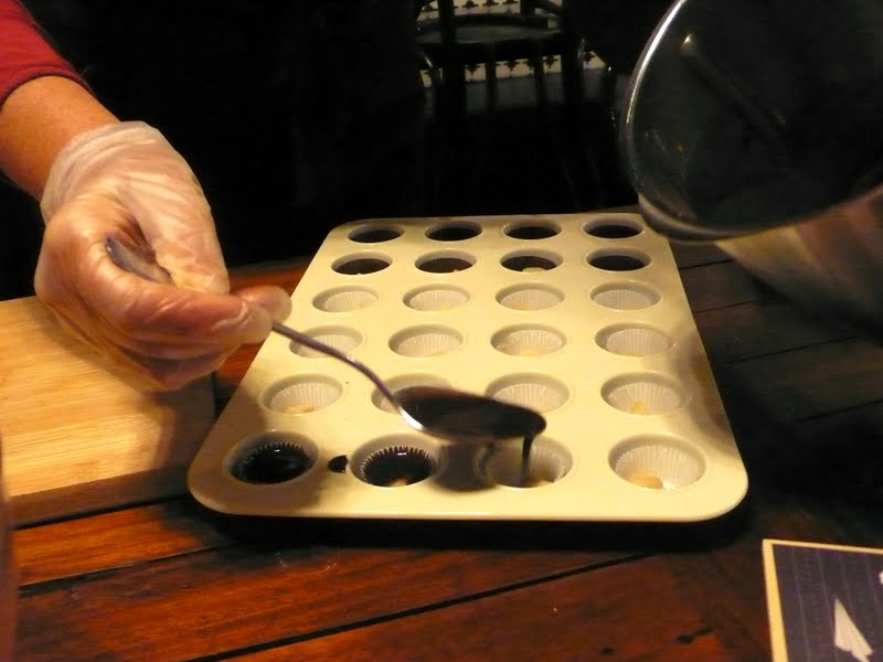 After making the cheesecake we learnt how to make some raw chocolate pastry for our ‘Pretty Little Raw Petti Fours’.